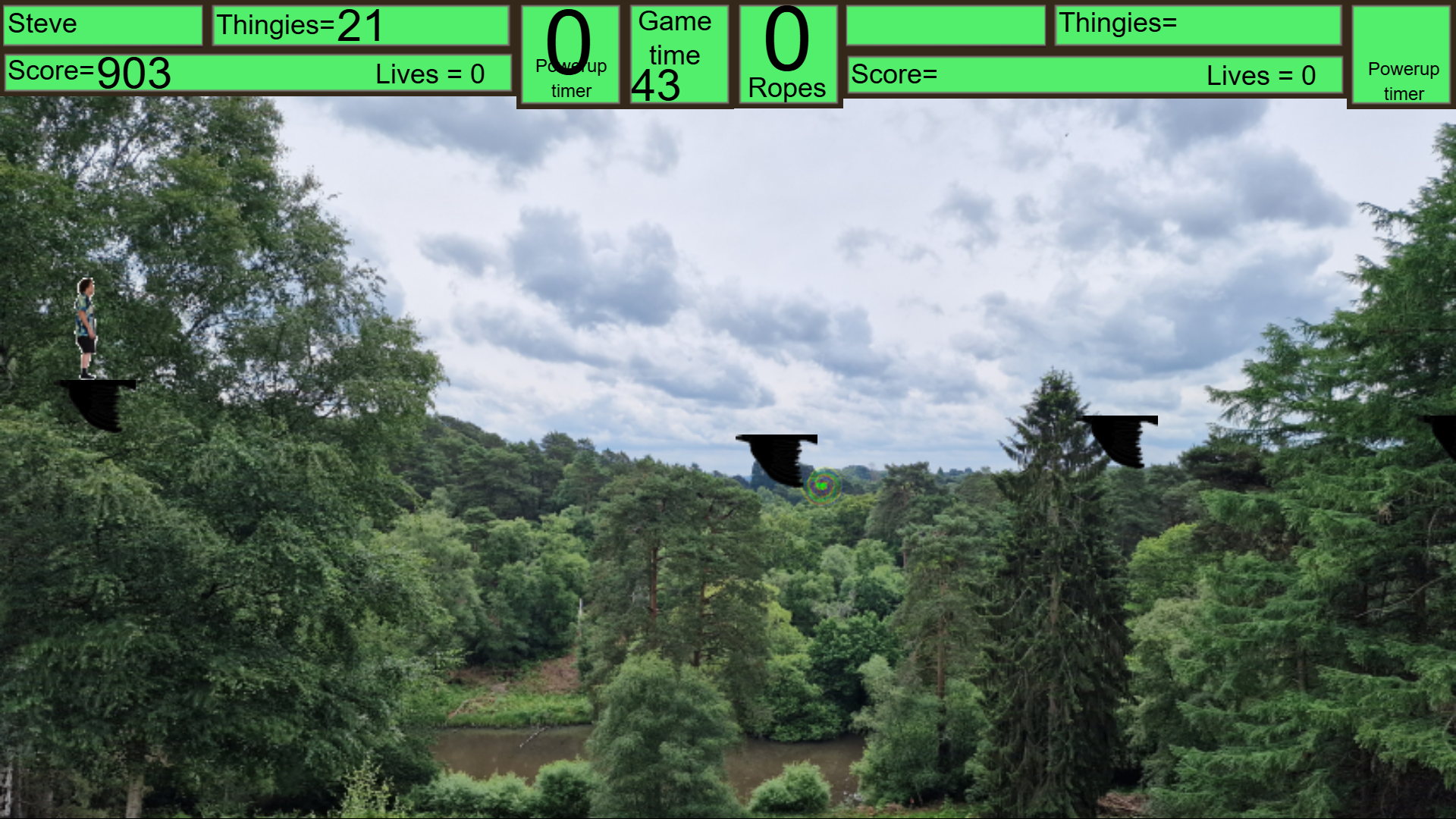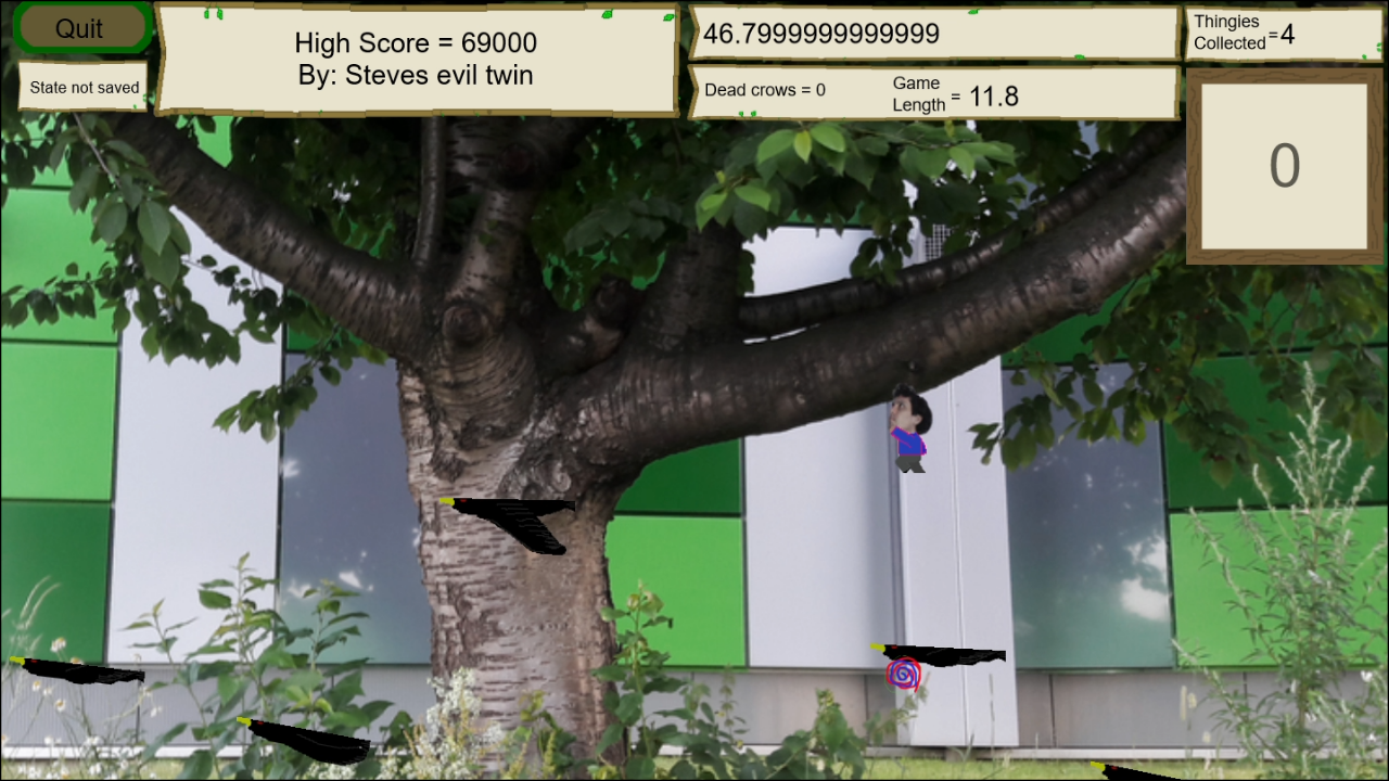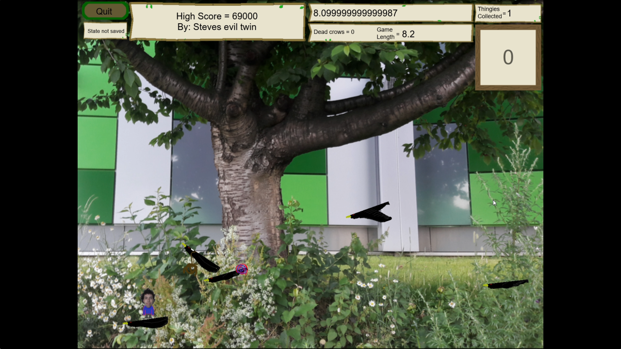 Collect Thingies and stay on the crows for as long as you can to get high scores